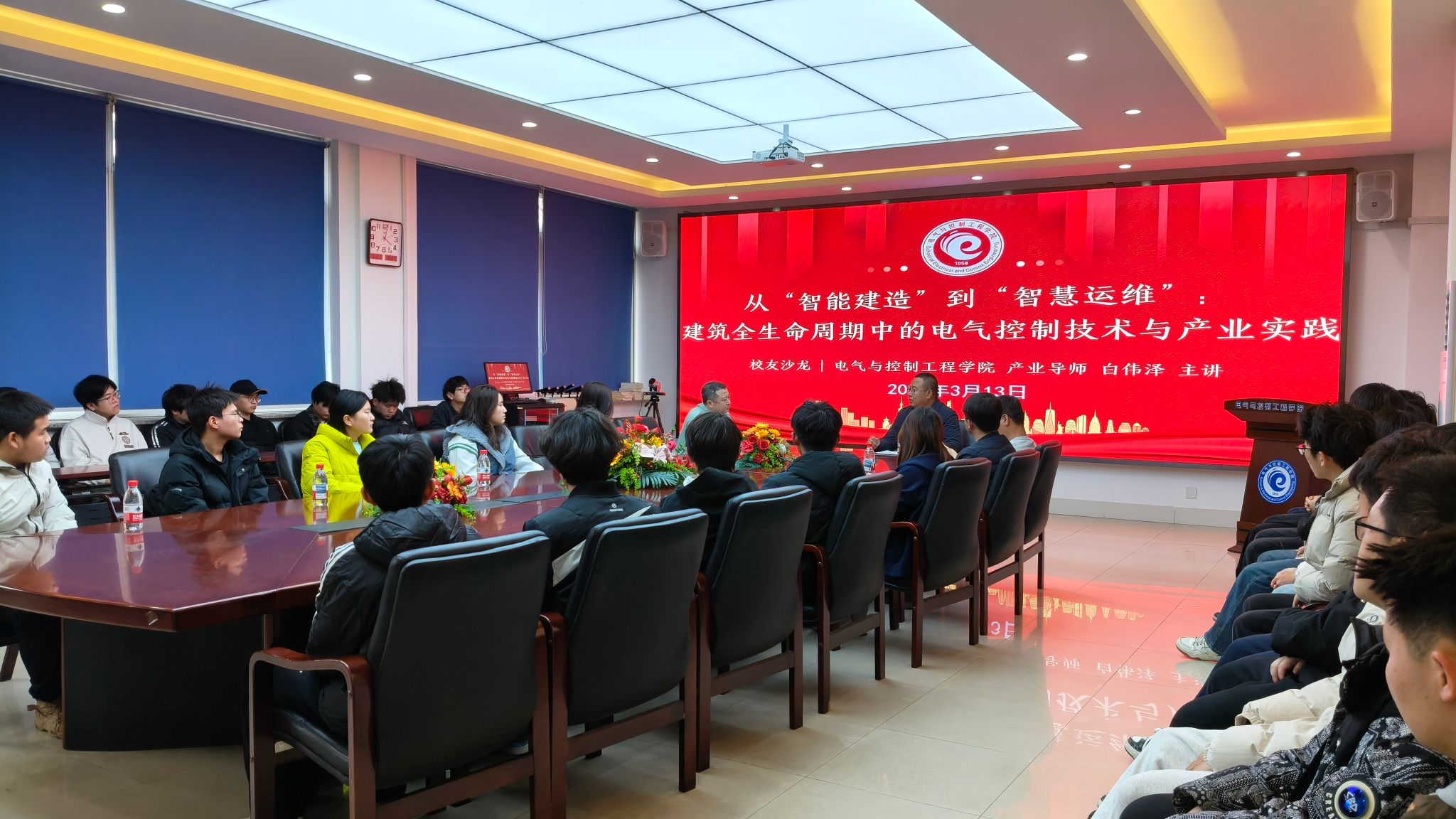 签约仪式后,白伟泽以“从‘智能建造’到‘智慧运维’:建筑全生命周期中的电气控制技术与产业实践”为题作了专题讲座。作为学院新聘产业导师,他结合自身从业经历,分享了智慧控制在现代建筑中的实际应用案例,分析了行业发展趋势,鼓励同学们立足专业、关注前沿,提升实践能力。讲座内容贴近实际、案例生动,现场气氛活跃。在互动交流环节,同学们围绕职业规划、企业招聘要求、在校期间应重点掌握哪些技能等问题踊跃提问。白伟泽结合企业用人标准和个人成长经历,建议同学们夯实专业基础,注重工程实践,培养解决复杂问题的能力,同时关注AI新质生产力、智能建造等新兴领域,为未来职业发展做好准备。现场交流深入,同学们表示受益匪浅。