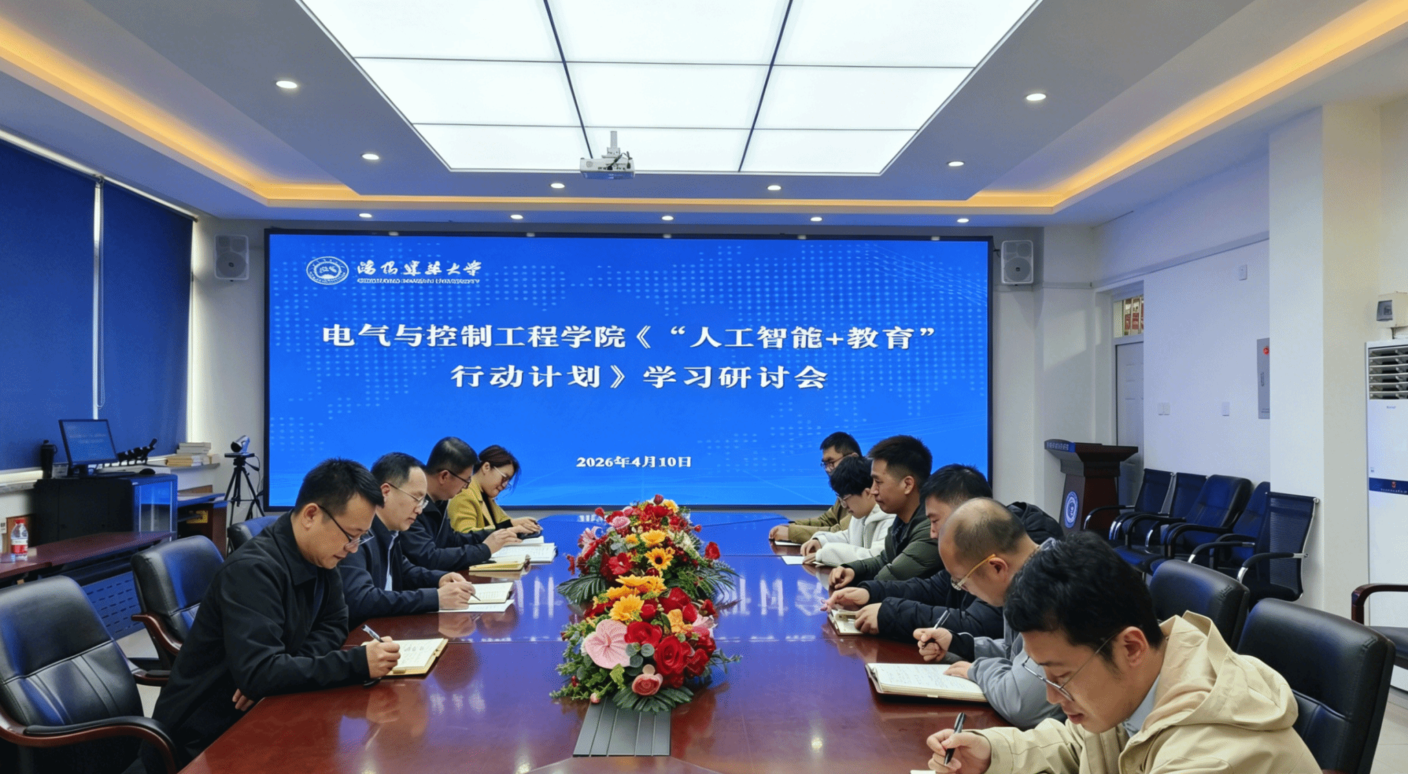 为深入贯彻落实学校党委工作要求,深化“AI+教学”融合创新、加强AI课程建设和应用,近日,电气与控制工程学院组织全院教师开展了“人工智能+教育”主题教学研讨活动,认真学习了教育部等五部委《“人工智能+教育”行动计划》文件精神,研讨了人工智能与专业教育教学深度融合的思路举措。