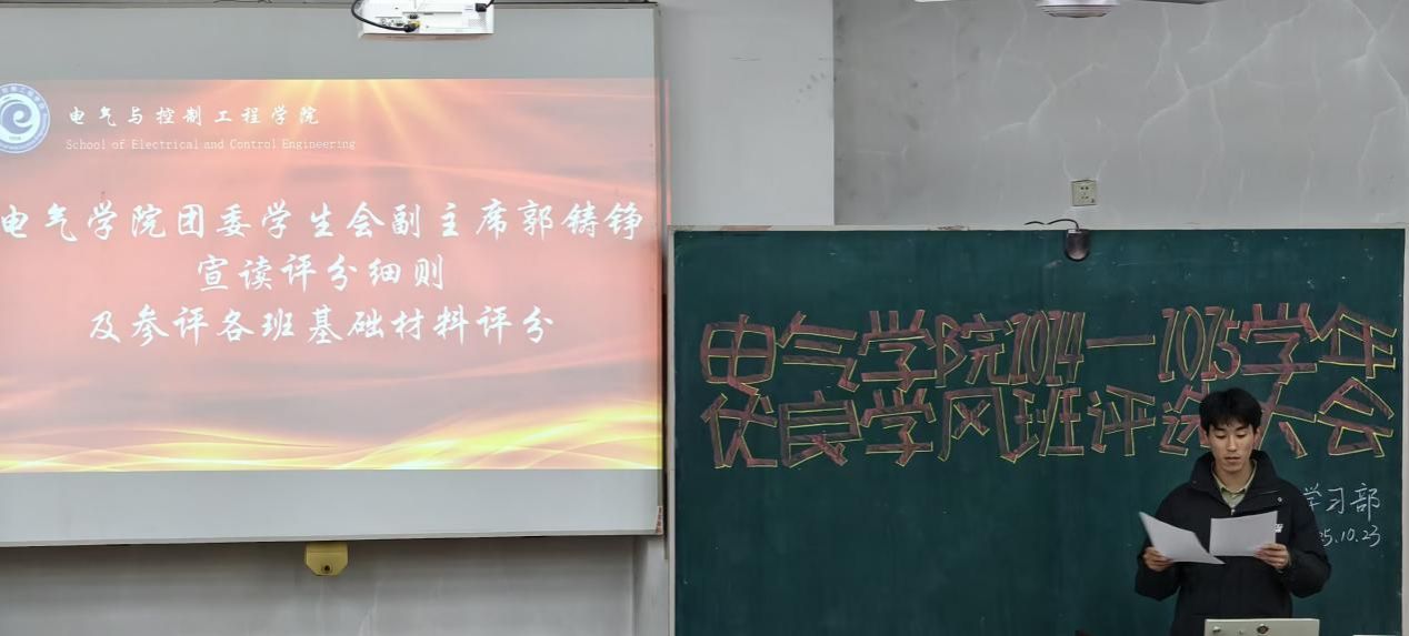 为深化学风建设,营造勤学奋进的育人氛围,增强班级凝聚力与集体荣誉感,10月23日,电气与控制工程学院团委学生会在乙1-101教室成功举办2024-2025学年优良学风班评选大会。